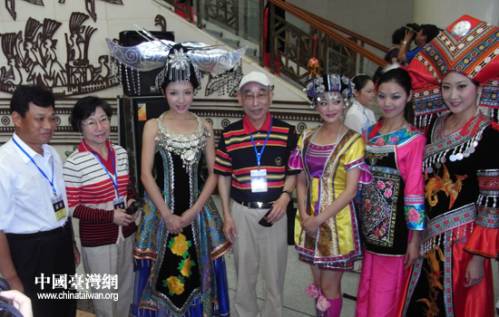 臺灣嘉賓與少數民族姑娘合影留念(中國臺灣網 蕪同 攝)