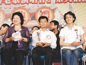 大高雄市長三位參選人陳菊(左)、楊秋興(中)與黃昭順(右)昨天晚上同時參加活動,難得同臺。(圖:臺灣《聯(lián)合報》)