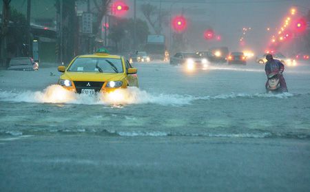 “凡亞比”臺風風強雨大,造成高雄市區積水嚴重,汪洋一片。 來源:臺灣《中國時報》