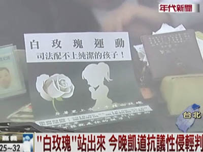 中國臺灣網9月26日消息 綜合臺灣媒體報道,由于幼童遭性侵案的嫌犯接連被輕判,臺灣民間團體和網友昨(25)日晚間6時在臺灣凱達格蘭大道舉行了“白玫瑰運動集會”,9時30分準時結束。上萬民眾身著黑上衣,手拿白玫瑰,牽著穿著象征純潔白衣的小朋友到場參與,要求擴大性侵害保護對象,淘汰不適任法官,并建立性侵案件專家證人制度。