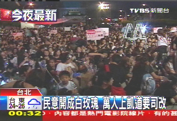 臺灣上萬民眾舉行了抗議性侵案遭輕判的“白玫瑰運動”。來源:臺灣TVBS電視臺