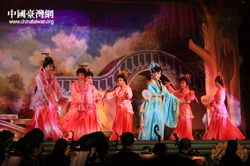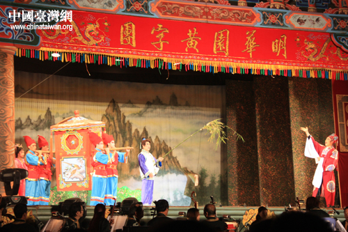 臺灣明華園黃字劇團(tuán)與漳州市薌劇團(tuán)同臺獻(xiàn)演大型歌仔戲《周公法斗桃花女》。(中國臺灣網(wǎng) 胡珊珊 攝影)