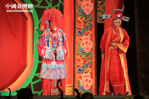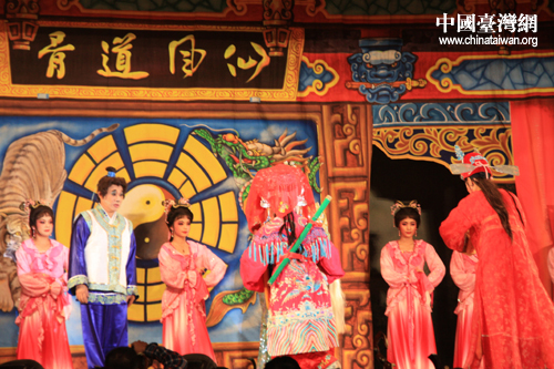 臺灣明華園黃字劇團與漳州市薌劇團同臺獻演大型歌仔戲《周公法斗桃花女》。(中國臺灣網 胡珊珊 攝影)