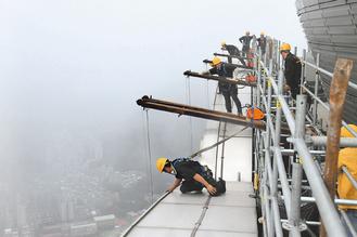 焰火設計師在高空勘察作業。(圖:臺灣《聯合報》)