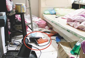 簡姓少女昨天使用吹風機(紅圈處),不知為何昏迷,造成小腿嚴重灼傷,其父發(fā)現(xiàn)后立刻將她送醫(yī)。圖片來源:臺灣《聯(lián)合報》