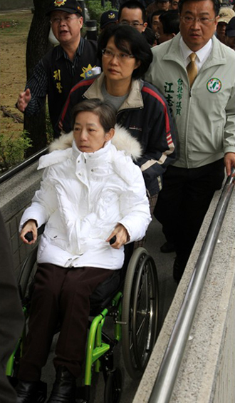 吳淑珍上午到高雄地檢署報到,準備轉往臺中培德醫院評估是否服刑。圖片來源:臺灣《聯合報》