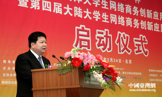 中國(guó)臺(tái)灣網(wǎng)3月24日北京消息 “首屆海峽兩岸大學(xué)生網(wǎng)絡(luò)商務(wù)創(chuàng)新應(yīng)用大賽暨第四屆大陸大學(xué)生網(wǎng)絡(luò)商務(wù)創(chuàng)新應(yīng)用大賽”24日在京啟動(dòng)。國(guó)臺(tái)辦主任助理龍明彪在啟動(dòng)儀式上表示:大賽為推動(dòng)兩岸高校及互聯(lián)網(wǎng)業(yè)界相互借鑒與合作、提升兩岸網(wǎng)絡(luò)商務(wù)創(chuàng)新與應(yīng)用水平架起了新的橋梁。他也希望大賽可以在兩岸學(xué)子聯(lián)系交流、兩岸高校借鑒合作、兩岸互聯(lián)網(wǎng)業(yè)界合作發(fā)展等方面發(fā)揮促進(jìn)作用。