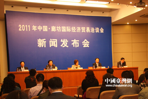 “2011年中國·廊坊國際經(jīng)濟(jì)貿(mào)易洽談會”新聞發(fā)布會現(xiàn)場。(中國臺灣網(wǎng) 趙靜攝)