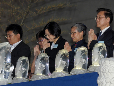 中國(guó)臺(tái)灣網(wǎng)5月8日消息 據(jù)臺(tái)灣“中央社”報(bào)道,臺(tái)灣慈濟(jì)基金會(huì)今(8)日舉辦浴佛大典,慶祝佛誕節(jié)、母親節(jié)和全球慈濟(jì)日。臺(tái)灣地區(qū)領(lǐng)導(dǎo)人馬英九、民進(jìn)黨主席蔡英文均出席浴佛典禮,但并未照面。