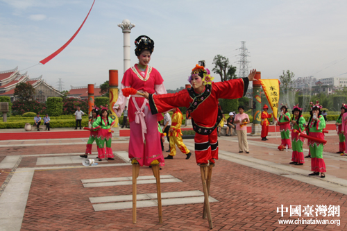 閩臺民俗表演,踩高蹺。(中國臺灣網(wǎng) 于斯文 攝)