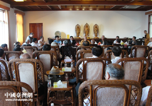 中國臺灣網(wǎng)7月8日舟山消息 日前,臺灣最大道教聯(lián)誼會寺廟金蘭會一行130余人在會長王增榮的帶領(lǐng)下來到浙江普陀山交流參訪。普陀山佛教協(xié)會會長道慈大和尚接待了參訪團一行,雙方舉行了兩岸宗教文化交流座談。