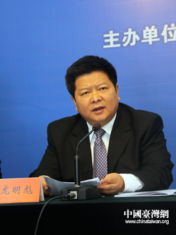 國(guó)臺(tái)辦主任助理龍明彪當(dāng)選委員會(huì)主任后發(fā)表講話(huà)。(中國(guó)臺(tái)灣網(wǎng) 王偉 攝)