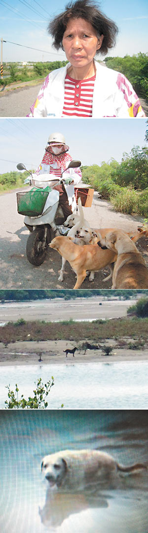 王沈金來每天總是花好幾個小時,沿著三公里堤岸,邊喂邊等所有的狗游過來,偶有10多只狗一起游上岸的畫面,志工媽媽徐滿惠說,“不清楚的人,還以為狗真的在海中游泳。”