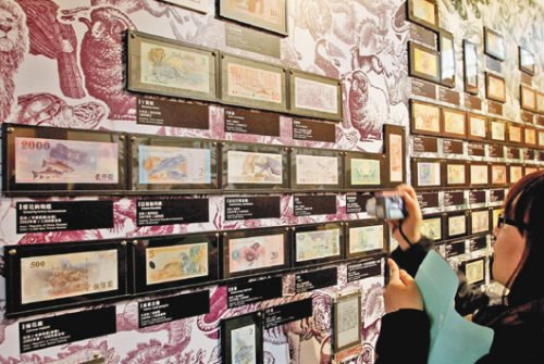 “鈔票的故事”展,展出鈔票圖像之美,吸引許多民眾參觀。(圖片來源于:臺灣《聯合報》)