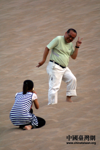臺灣記者康彰榮在鳴沙山拍照留影。(中國臺灣網 郜利敏 攝) 第1頁第2頁第3頁第4頁第5頁