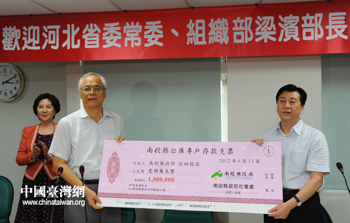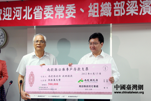 6月13日,河北省委常委、組織部部長梁濱在南投縣捐款100萬人民幣用于賑災(zāi)。(中國臺(tái)灣網(wǎng) 馬迪 攝)