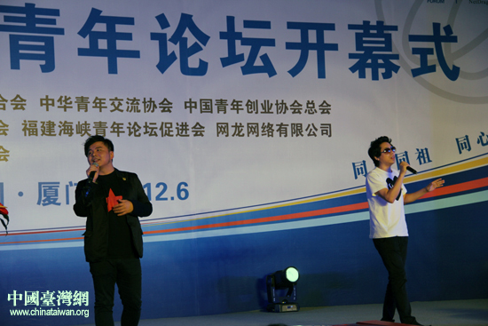中國臺灣網6月16日廈門消息 6月15日下午,第十屆海峽青年論壇開幕式暨十年紀念活動在廈門舉行。中華全國青年聯合會委員、著名歌手水木年華組合亮相紀念活動,參與現場訪談并為慶祝海峽青年論壇“花開十年”而深情獻唱。
