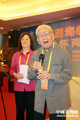 臺灣著名詞作家莊奴作為臺灣配偶代表在論壇上發(fā)言。(中國臺灣網(wǎng) 董子譽(yù) 攝)