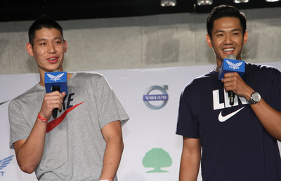 林書豪和黑人在記者會上。圖片來源:臺灣媒體