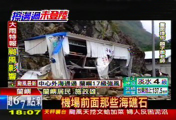 當(dāng)?shù)孛癖娒枋稣f,災(zāi)后(蘭嶼)道路中斷,連機(jī)場(chǎng)跑道也不保,島上食物及物資嚴(yán)重缺乏,災(zāi)情慘重。