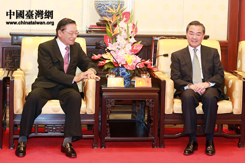 9月28日中午,中共中央臺辦、國務院臺辦主任王毅會見了臺灣海基會前董事長江丙坤。(中國臺灣網 陳佳慧 攝)
