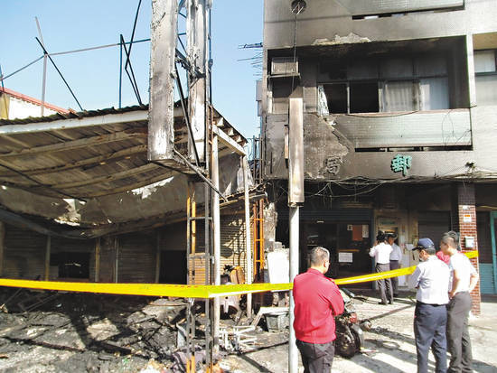 沙發店大火,隔壁郵局也遭波及,不僅外觀燒黑,電線也燒毀,無法營業。(圖片來自臺灣“聯合新聞網”)