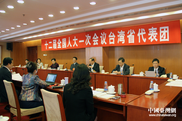 2013年3月5日下午,十二屆全國人大一次會議臺灣省代表團在駐地討論政府工作報告。(中國臺灣網 楊麗 攝)