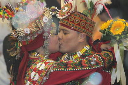 魯凱族新郎胡俊銓、新娘張慧君。(圖片來自臺媒)