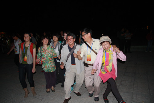 臺灣嘉賓在篝火晚會上盡情的舞著(中國臺灣網(wǎng) 蕪?fù)?nbsp;攝)
