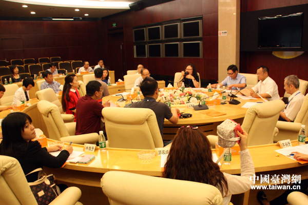 兩岸媒體記者與湖南廣播電視臺(tái)有關(guān)負(fù)責(zé)人進(jìn)行交流座談。(中國臺(tái)灣網(wǎng) 高斯斯 攝)