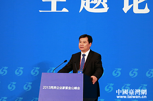蘇寧集團董事長張近東在“2013兩岸企業家紫金山峰會”主題論壇上演講。(中國臺灣網 王偉 攝)