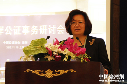 中國公證協會會長丁露致辭。(中國臺灣網 王怡然 攝)