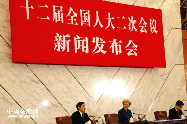 今天上午,十二屆全國人大二次會議在人民大會堂舉行新聞發(fā)布會,十二屆全國人大二次會議副秘書長、發(fā)言人傅瑩就會議議程和人大工作相關(guān)情況與安排進(jìn)行說明。(中國臺灣網(wǎng)記者 高斯斯 攝)