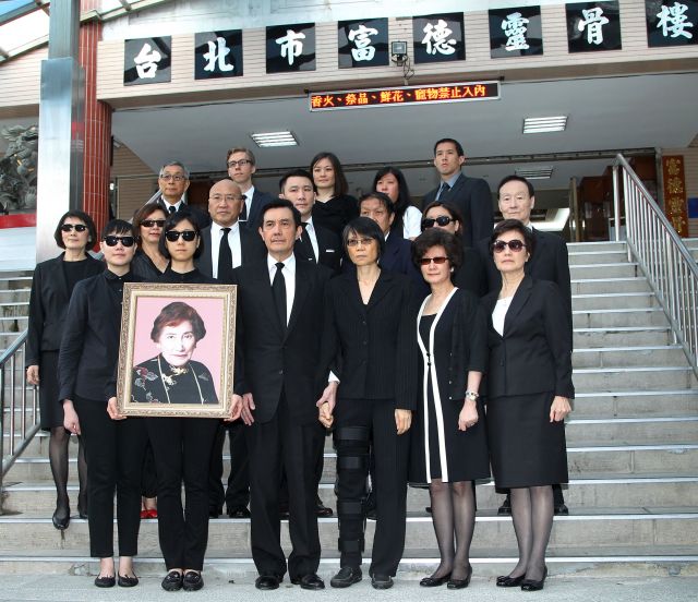 馬英九與家人感謝各界對母親秦厚修的關心,鞠躬致謝。(臺媒圖)