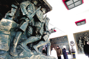 在普蘭店市唐房烈士陵園的入口處,兩座碩大的雕塑立在門兩旁,精心雕刻的各種獅柱石雕陵園內(nèi)隨處可見,280位烈士的墓碑靜靜地安放在草叢中。紀(jì)念館中,原立憲從國內(nèi)各地拍攝的圖片被主人精心布展。歷史仿佛在人們參觀時凝固了:長征、抗日戰(zhàn)爭、解放戰(zhàn)爭以及烈士事跡、名錄一一再現(xiàn)!坝20多位烈士的雕塑是我們根據(jù)原型雕刻的,有些部隊官兵看到這些英雄的雕塑,眼淚嘩嘩流!痹椊榻B,從免費(fèi)開館的當(dāng)天起到現(xiàn)在,已經(jīng)有幾千位參觀者到陵園追悼烈士英魂。