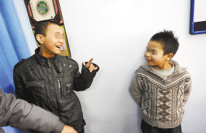 兩個(gè)孩子在派出所談笑風(fēng)生。
