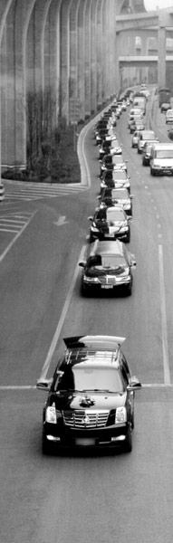 “全是奔馳、寶馬等名車,這婚車隊太有面子、太拉風了!”昨天上午11點,市民何先生興奮地向本報爆料稱,這個豪華婚車隊正由北辰大道向世博園方向前行。