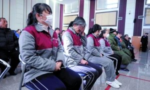 昨日上午,法庭內的旁聽席上坐了50余名旁聽者,據了解,其中多為被告人家屬。上午10時5分,31名被告人排隊進入法庭。