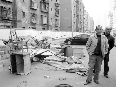 “工人把帳篷搭到這兒后,我們門前的停車場(chǎng)幾乎都被占了,對(duì)生意影響很大!”3月10日下午4時(shí)許,記者來到農(nóng)民巷西段時(shí),“肆坊肘子”的老板正為這事犯愁。隨后,相鄰的“新港麗”中西餐廳和溫州港的老板也向記者訴說了他們的煩惱。他們告訴記者,3月9日晚上,一小部分工人開始搭建帳篷住了下來,晚上9點(diǎn)多,他們就看見工人在路邊倒臟水、隨地大小便,顧客停在路邊的車也被搭建材料劃傷。第二天,地上就堆了許多生活垃圾,到了中午工人就坐到酒店門前的臺(tái)階上,對(duì)生意影響太大了,“餐飲生意講究的就是衛(wèi)生,這顯然不太好!”