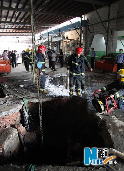 5月4日,救援人員在事故現場施救。當日13時10分左右,杭州余杭經濟開發區華興印染有限公司發生一起氣體中毒事件,數名工人被送往醫院,其中3名工人經搶救無效死亡。目前,事故具體原因還在進一步調查中。新華社發