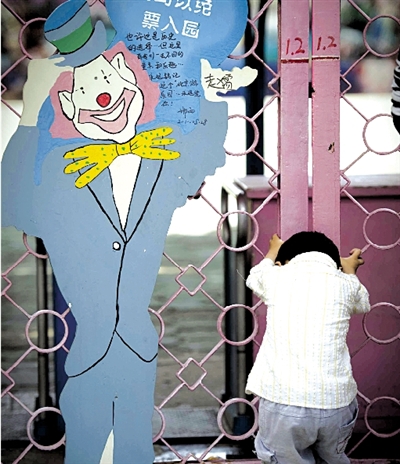 即將停業(yè)的游樂園大門上寫滿了懷念快樂時(shí)光的字樣。