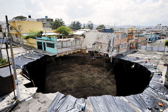 近日,國內各地屢現“天坑”。而地球的那一端似乎也不平靜,南美危地馬拉出現了一個直徑30米的巨大“天坑”。而出現此坑不久后,這里就發生了火山噴發!疤炜印钡某霈F,是否就是某種災難的預兆?羊城晚報記者專訪了中山大學張珂教授和華中師范大學揭毅教授,他們認為,此次頻現的“天坑”其實是地陷,與地震關聯不大,“人禍”要大于“天災”。