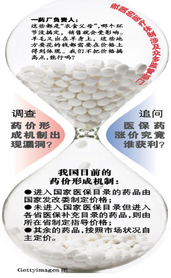 2009年國家醫保目錄新增了260種藥品,其中30種,在進入目錄前后紛紛漲價,問題出在哪?記者了解到,進入各省醫保目錄的藥品也有類似現象。離譜的是,藥廠居然大吐苦水:我們并未從漲價中獲利。這筆錢被誰賺走了?