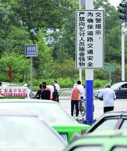 路口掛起“禁止施舍”牌