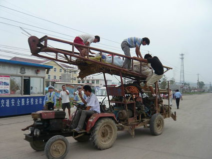 7月2日,(安徽)淮南交警大通大隊上窯中隊在轄區(qū)內(nèi),開展打擊機動車故意遮擋污損號牌、未按規(guī)定安裝機動車號牌、未懸掛機動車號牌等涉牌涉證違法行為的行動。10點多,正在服務站執(zhí)勤的民警發(fā)現(xiàn),一輛貌似“臥鋪”車的拖拉機“一蹦三跳”地由東向西行駛而來。此拖拉機經(jīng)過改裝的車斗子共分3層,并且每一層的空間都很寬敞,下面一、二層“臥鋪”放有施工工具,最上面一層“臥鋪”留人睡覺。拖拉機一開,三層“臥鋪”就不由自主地晃悠起來。讓人更為擔心的是,最上面一層“臥鋪”真有不少人在睡覺。民警發(fā)現(xiàn)此情況后,當即將其攔下,當民警向駕駛員詢問該車后的車斗緣何如此時,駕駛員還沾沾自喜地說這是自己的小“發(fā)明”,既節(jié)省了坐車的車票錢,又可以帶上不少施工工具,真是一舉兩得!