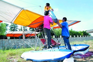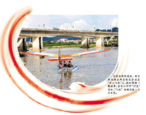 被當(dāng)?shù)厝罕姺Q為“河源怪人”,一生鐘情自造“飛機(jī)”、現(xiàn)年35歲的河源市連平縣田源鎮(zhèn)金樹(shù)村農(nóng)民熊天華,為渴望擁有自己親手制造出來(lái)的飛機(jī)和實(shí)現(xiàn)自己的飛天夢(mèng),16年來(lái)一直沉迷閉門自造飛機(jī)和進(jìn)行冒險(xiǎn)試飛活動(dòng)。昨日,他造出第六架不同于以往的陸上“飛機(jī)”——水上“飛機(jī)”,這也是他人生首次自造的“水上飛機(jī)”。