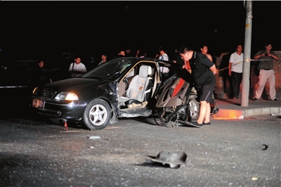 “有‘嗡嗡’的馬達(dá)聲,只看到一道黑影閃過(guò)。”目擊者翟女士說(shuō),當(dāng)時(shí)酒仙橋路上一輛黑色轎車(chē)由南向北疾速行駛,“咣”地一聲悶響,迎面將一輛羚羊轎車(chē)撞得原地打轉(zhuǎn),隨后繼續(xù)前行。緊接著,不遠(yuǎn)處再次傳來(lái)碰撞聲,一輛逆向車(chē)道上的出租車(chē)“被黑轎車(chē)頂回去三四米”。黑轎車(chē)隨即變向,撞壞橋邊護(hù)欄墜河。