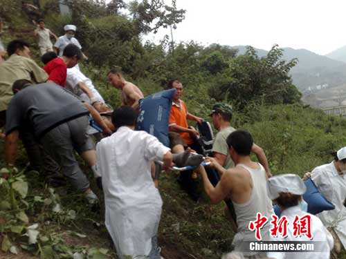 由于出事地點(diǎn)地形十分險(xiǎn)要,公路離崖底大約有30米的垂直距離,根本無(wú)路可下,情況十分危急,當(dāng)?shù)卮迕竦膮f(xié)助下找來(lái)鋤頭、鐵鍬迅速打開(kāi)了一條臨時(shí)“生命通道”,趕到現(xiàn)場(chǎng)救援的消防官兵帶上破拆工具鉆進(jìn)車內(nèi)搜救幸存者,傷者被找到并用腰帶將傷者固定在擔(dān)架上,在當(dāng)?shù)卮迕窈偷膮f(xié)助下,用接力的方式抬著擔(dān)架,將傷者抬上路面,并立即送往縣內(nèi)各大醫(yī)院進(jìn)行急救。趕到現(xiàn)場(chǎng)的醫(yī)務(wù)人員判斷,車內(nèi)有一些已無(wú)生命跡象。