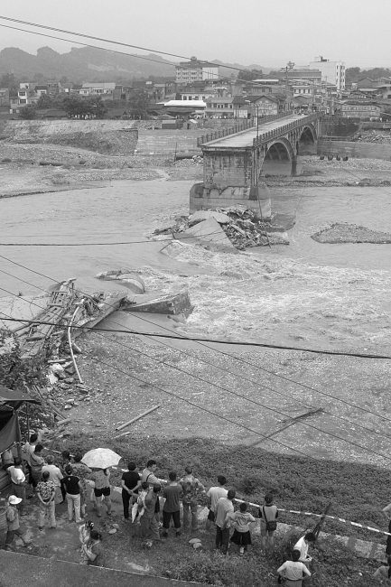 “當時轟隆一聲巨響,把我突然驚醒。我以為是安昌江漲大水,水翻堤后把哪家房子沖倒了。于是我坐起來,摸起電筒就往樓下沖!本o挨橋頭而居的張大爺回憶說,他拿起電筒下樓后,打開房門,步入街道才發現,并沒有漲大水。