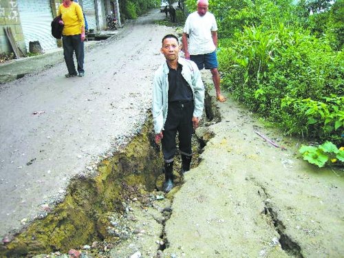 在連續(xù)暴雨襲擊后,資中雙龍鎮(zhèn)狀元村出現(xiàn)了一條長達500多米的地陷裂縫,讓許多村民的房屋、莊稼等受損。令村民更擔(dān)心的是,地陷裂縫還在進一步塌陷。目前,雙龍鎮(zhèn)政府的干部組成了2個工作組,8人輪流監(jiān)控地陷裂縫,晴天4小時觀測一次,雨天24小時監(jiān)控,一旦發(fā)生險情,立即組織村民轉(zhuǎn)移。地陷裂縫到底是什么原因產(chǎn)生的?昨日,成都商報記者來到狀元村采訪。